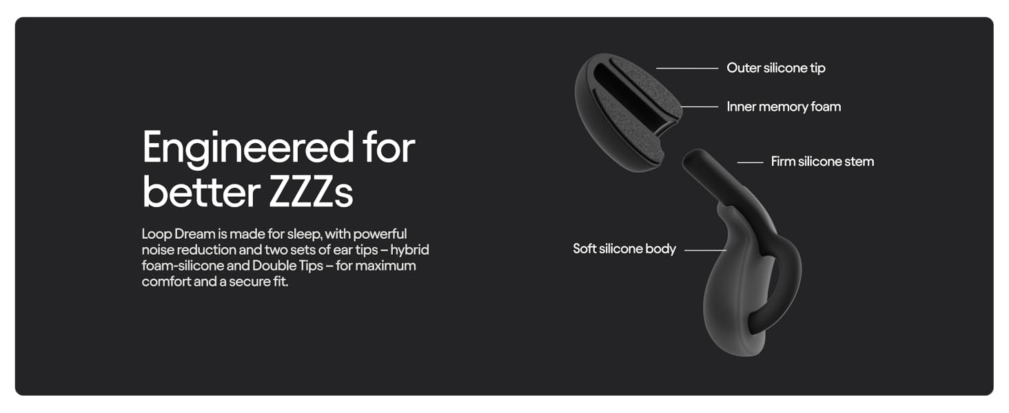 Preloaded with Loop Dream Foam-Silicone Ear Tips – plus Loop Dream Double Tips for more customization - Approved by sleep scientists